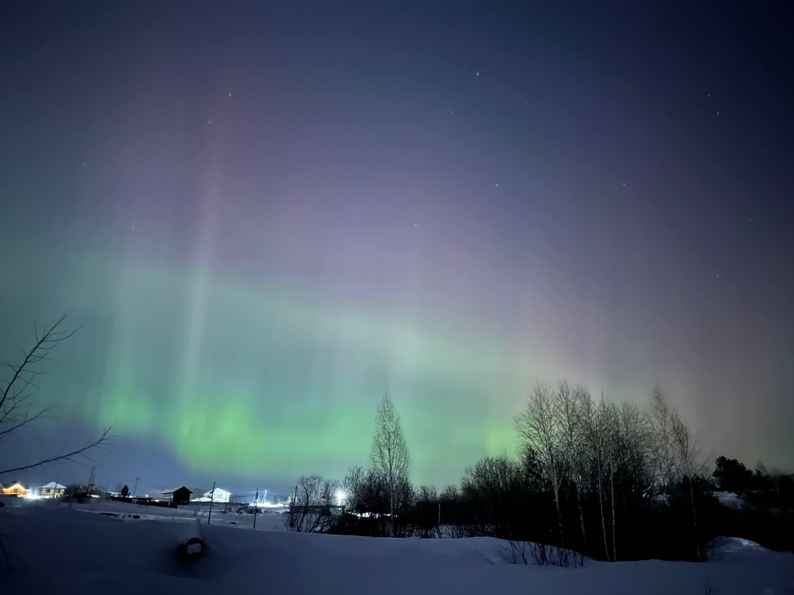 - В деревне Березки, расположенной в 30 километрах от Томска, северное сияние поймал в объектив Александр.