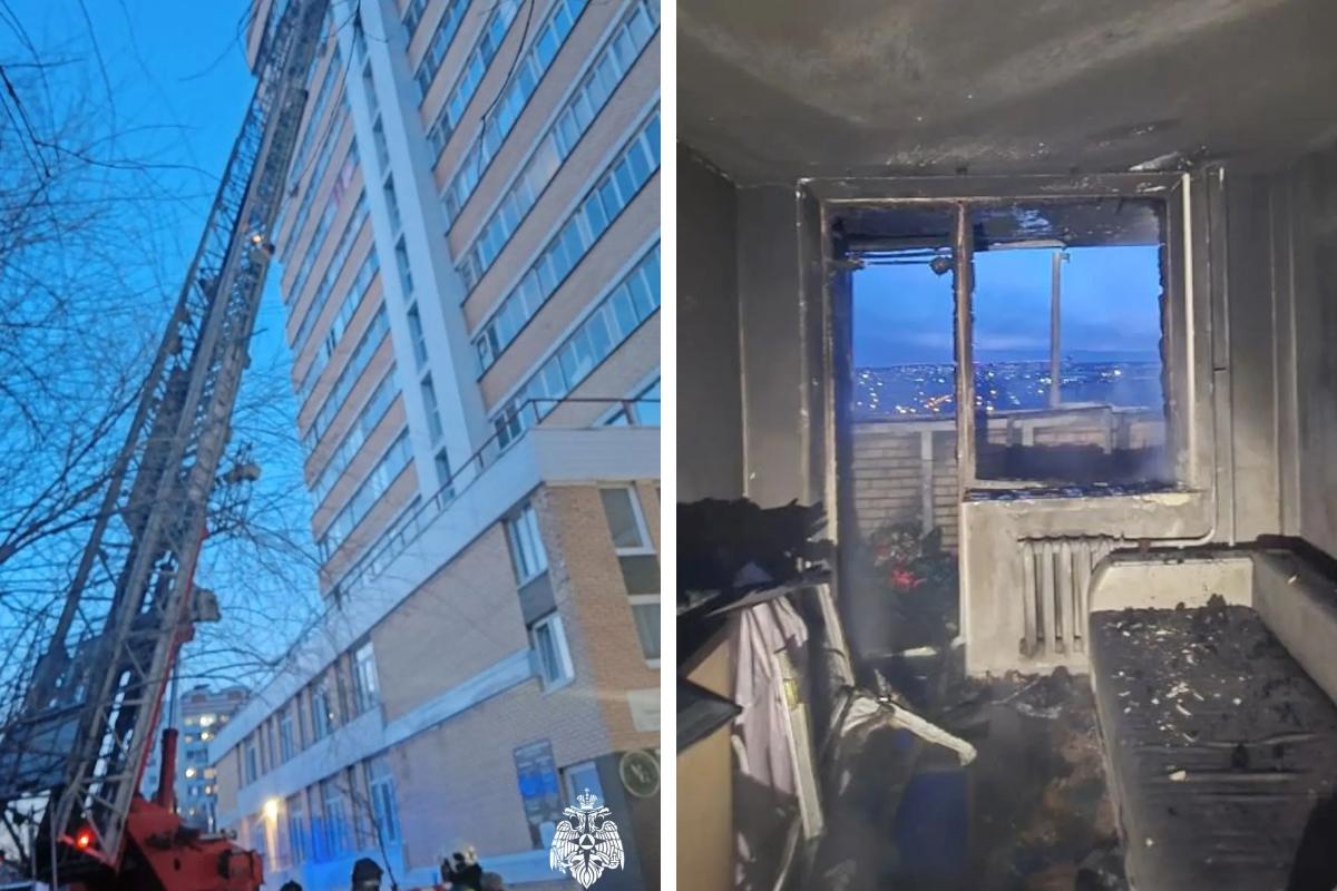 В Томске на улице Ленской вспыхнул пожар в квартире на 14 этаже многоэтажного дома. Сигнал о возгорании поступил в службу спасения в 20:19 9 апреля.